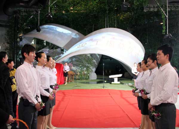 展館的設計形象湖南色彩濃厚,竹、紙、芙蓉花、桃花源、武陵源概念等湖南元素以及蔡倫造紙、隆平水稻、白石藝術等湖湘人文形象貫穿整個設計。環(huán)體主體材料為竹材,由國內(nèi)竹材制造供應基地——湖南桃花江實業(yè)有限公司全程提供