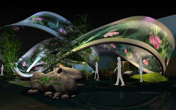 整個設計方案為綠色設計,設計者充分考慮了展館展項的循環(huán)再生再利用,符合3R標準,即:節(jié)約,可循環(huán)利用又可重復使用;其主要結構材料用濃烈湖湘印象的桃花江竹材,使用后可化物為泥,非常環(huán)保。整個展陳準備在世博后轉入湖南少兒科技館繼續(xù)使用。