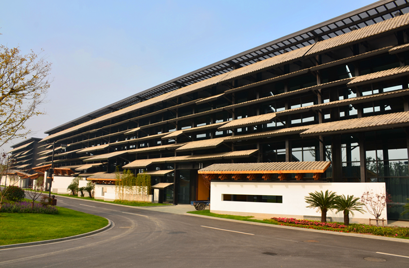 烏鎮互聯網國際會展中心位于烏鎮西柵景區西北部,建筑面積8.1萬平方米,由「普利茲克建筑獎」獲得者、中國美術學院建筑藝術學院院長王澍設計。