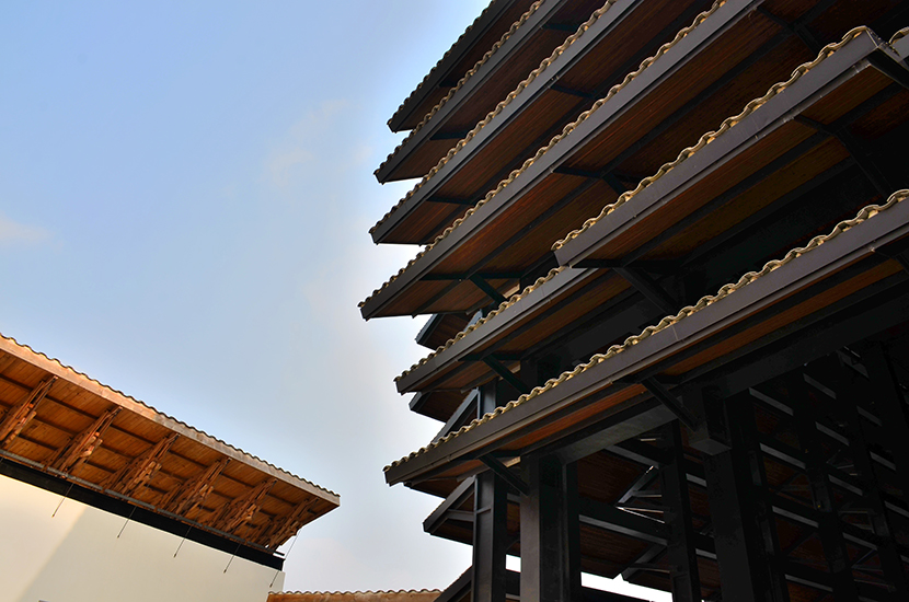 會址外立面上,采用260萬片江南小青瓦、5.1萬根鋼索以網狀肌理寓意互聯網,30萬片桃花江戶外防腐竹材吊頂,整體呈現江南古老建筑與現代網絡相融共生的和美場景,也與整個烏鎮形成富有生機的時代對話。