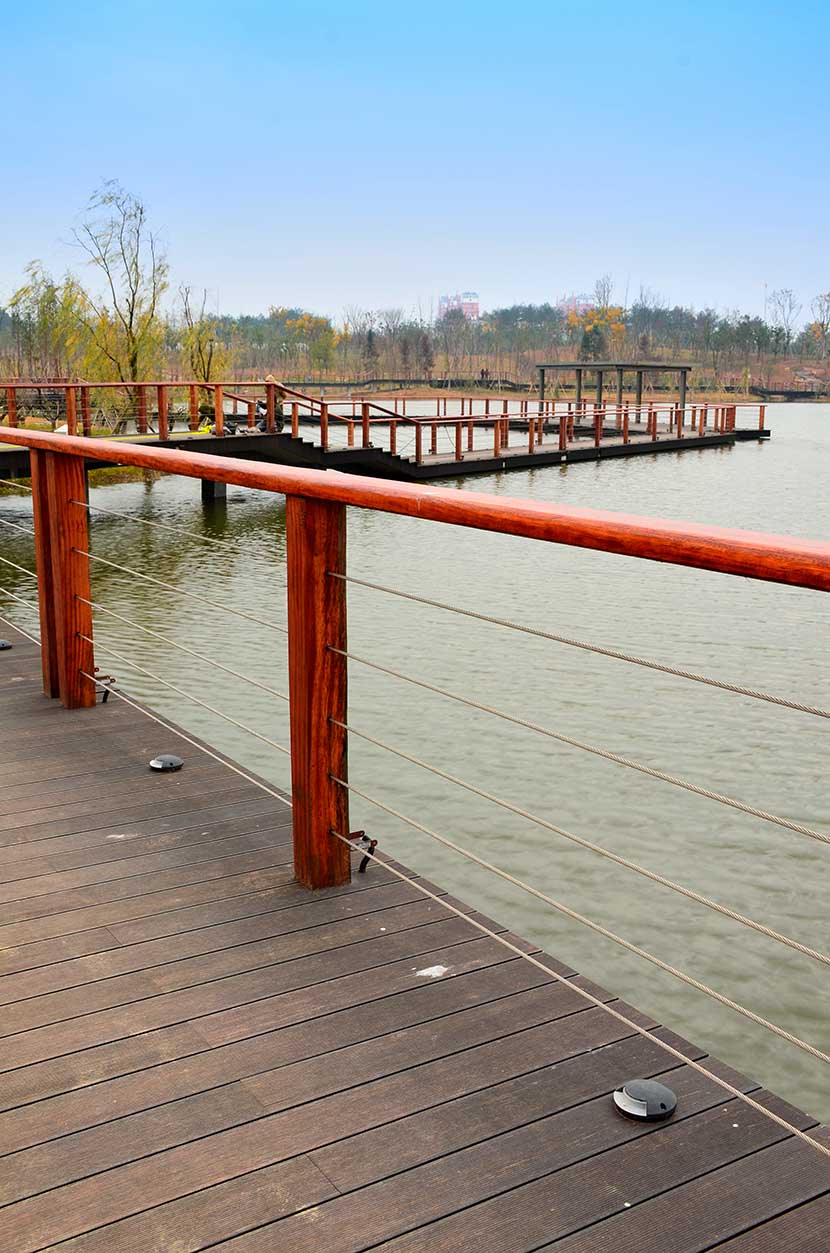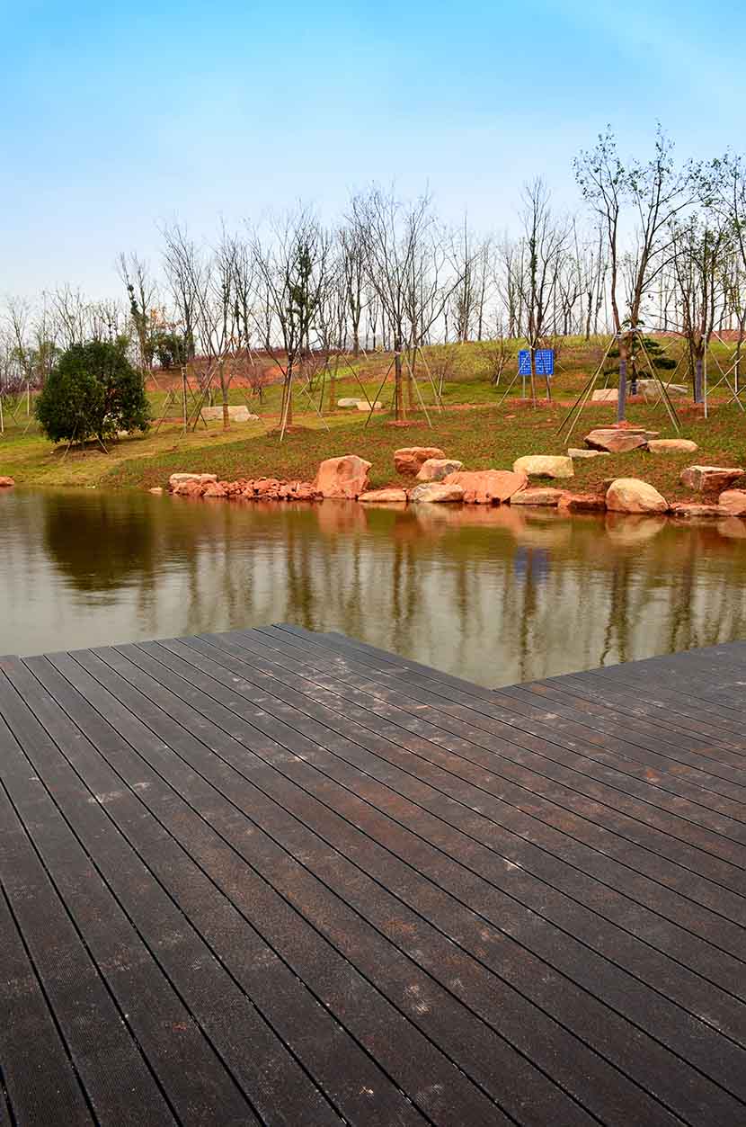 金獅湖公園位于浙江金華市北部的浦江縣,面積1265畝(水域面積368畝),總投資48億元。項目規劃為一環(金獅湖慢行游憩環)、三片(人文體驗景觀風貌片、動感都市景觀風貌片、自然生態景觀風貌片)及五區(工業遺存展示區、書香文創休閑區、康體活動休閑區、濕地田園游覽區、濱湖廣場活力區)。公園環湖景觀步道全部使用桃花江戶外防腐竹地板,打造金華的“小西湖”。